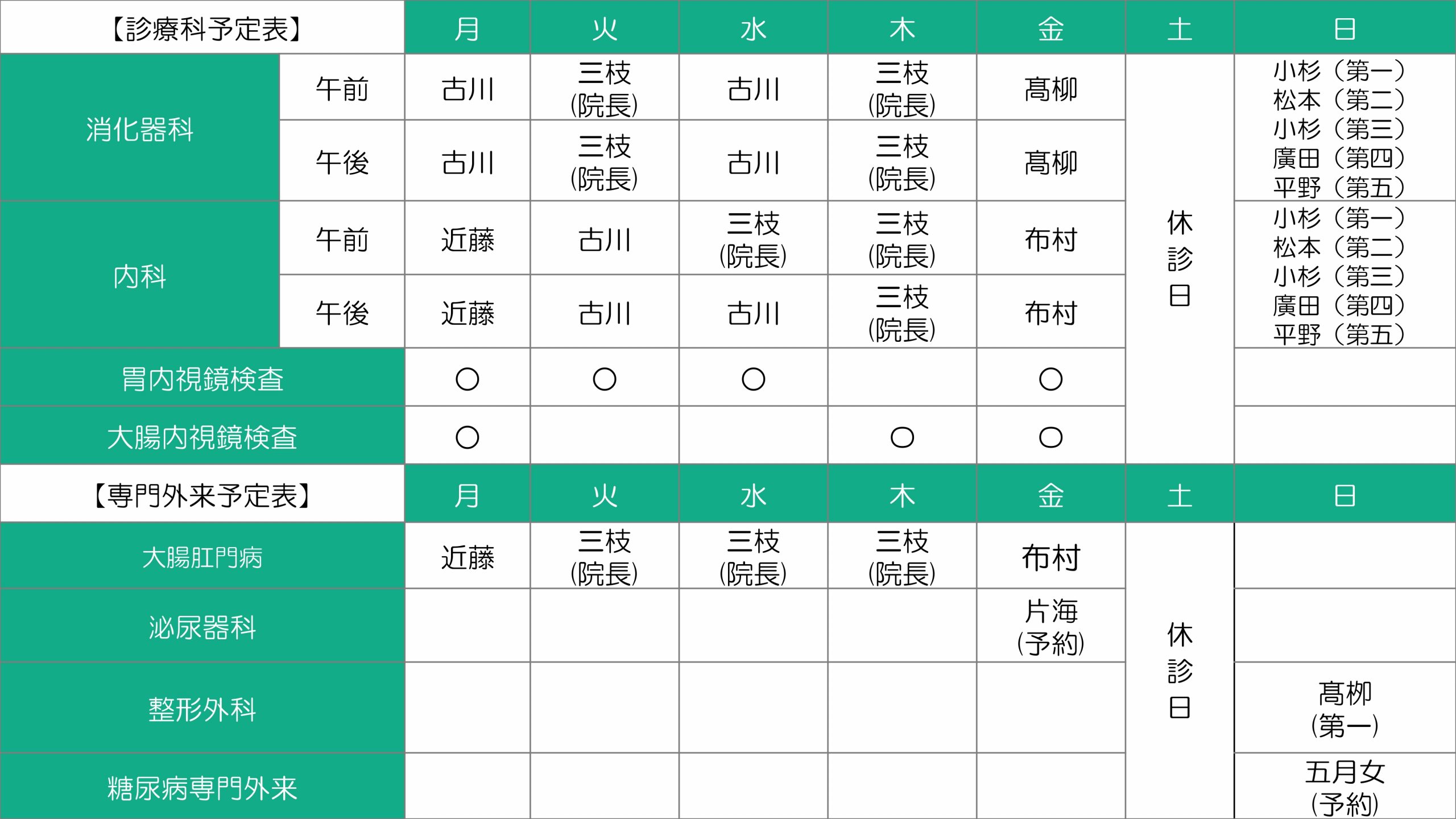 休診日 毎週土曜日